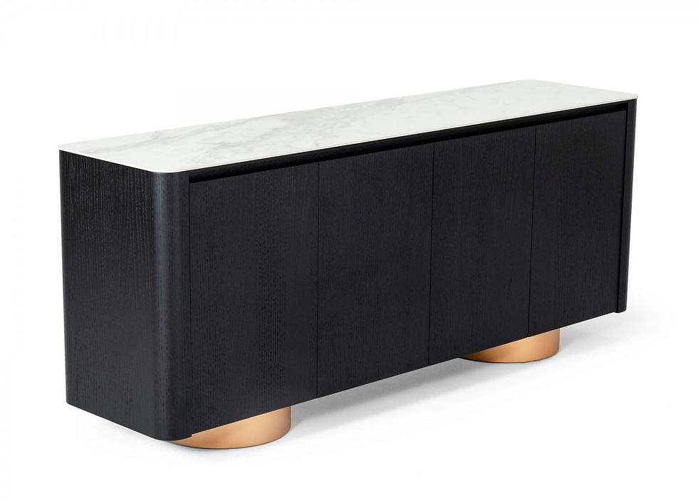 White High Gloss & Stainless Steel Gun Metal Buffet